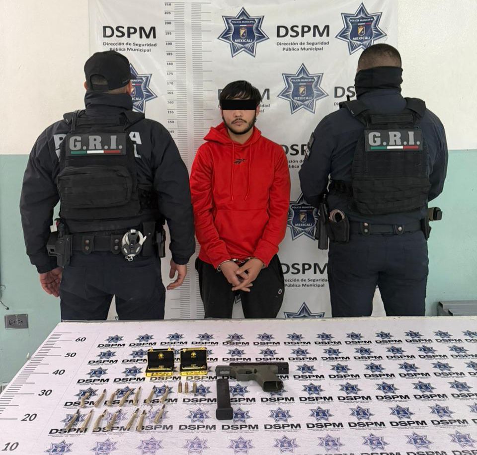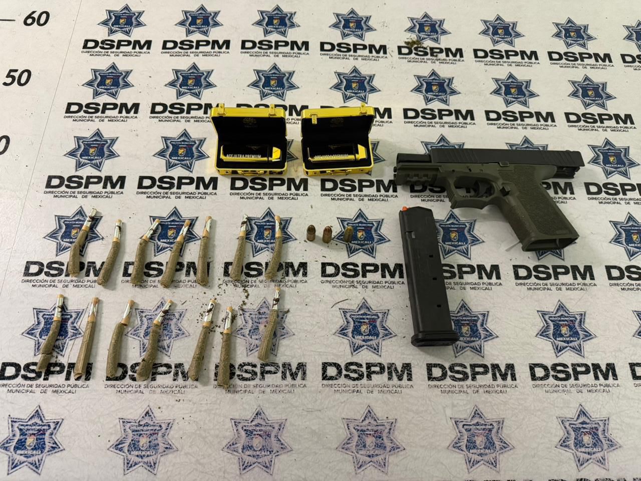 Tras unos minutos, los elementos lograron la captura del hombre identificado como Mauricio Fabricio de 20 años de edad a quien se le aseguró un arma de fuego corta calibre 9 milímetros con un cargador abastecido de 3 cartuchos útiles, además de 14 cigarros de marihuana, dos cajas de color dorado con un cigarro electrónico y un cartucho que contenía un líquido amarillo con aroma a marihuana.