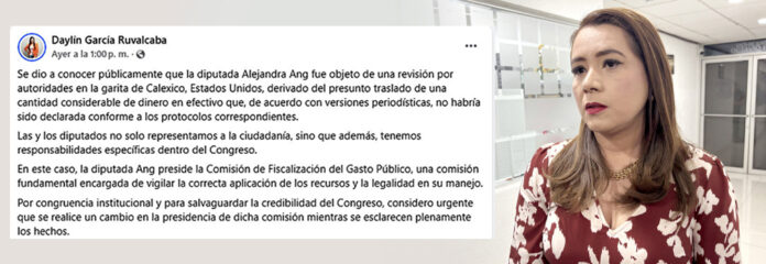 La diputada fue detenida en la garita de Calexico con más de 800 mil pesos divididos en dos compartimientos. Especialistas: acción es ilegal, amerita investigación por violación a la ley aduanera
