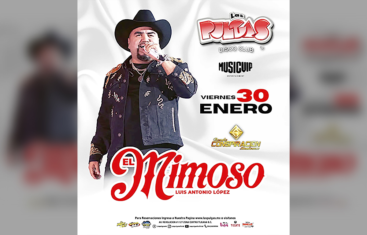 El cantante Luis Antonio López, “El Mimoso”, llega a Tijuana con una presentación programada para hoy viernes 30 de enero a las 8:00 p.m. en Las Pulgas Disco Club.