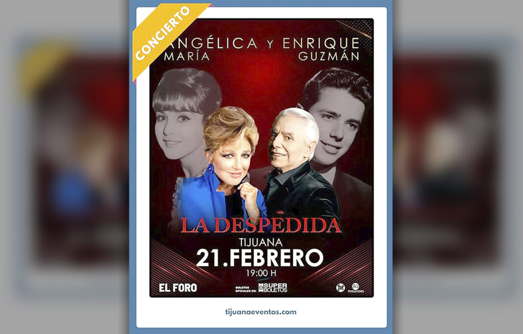 Angélica María y Enrique Guzmán volverán a coincidir en un escenario de Tijuana como parte de su gira de despedida, en una presentación programada para el 21 de febrero en El Foro Jai Alai.