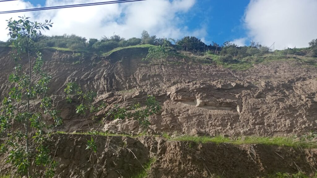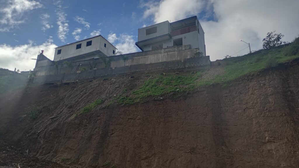 Desde la avenida Circuito de las Águilas (segundo acceso a Santa Fe) se observa que hay un espacio libre entre el talud y la propiedad en construcción dejado por tierra que se ha ido deslizando. Más abajo se observa una maquinaria