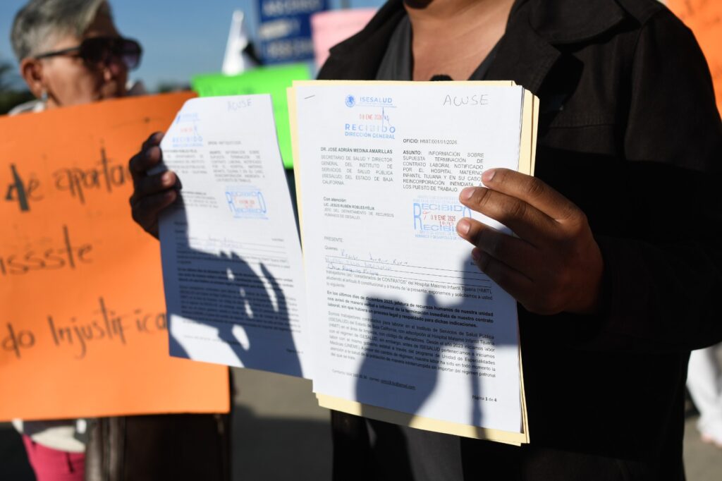 Trabajadores del Hospital Materno de Tijuana se manifestaron este lunes 19 a las afueras de las instalaciones con el objetivo de exigir respuestas de autoridades ante despidos injustificados.