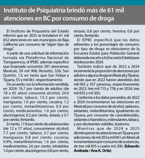 La Comisión Estatal para la Protección contra Riesgos Sanitarios de Baja California (COEPRIS) realizó 128 visitas en 2025 a centros de rehabilitación para consumidores de drogas, con el fin verificar si las clínicas estaban cumpliendo con la Norma Oficial Mexicana 028, relativa al tratamiento y el control de las adicciones.