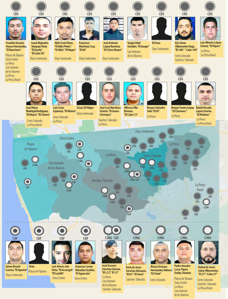 En el pleito territorial por Tijuana, que ya acumula 176 muertes violentas el presente año, de acuerdo a el análisis de las corporaciones en la Mesa de Seguridad, tiene identificados a los siguientes operadores.
