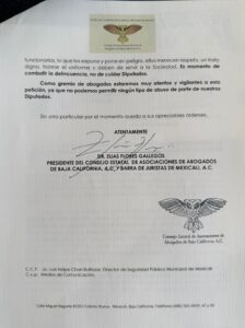 Asimismo, también se hizo el llamado a la Fiscalía General del Estado de Baja California, ya que el legislador también cuenta con dos agentes adscritos a la autoridad investigadora, siendo una situación similar a la ocurrida con la Dirección de Seguridad Pública, pues, de acuerdo con el presidente Elías Flores, este no paga por el servicio; aunado a esto, aseguró que los elementos de investigación no cuentan con la preparación necesaria para fungir como escoltas de funcionarios y/o empresarios, lo que representa otra incongruencia.