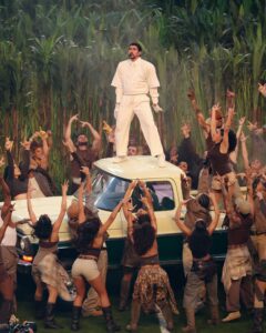 En solitario, el artista boricua interpretó temas como “Tití Me Preguntó”, “Yo Perreo”, “Baile Inolvidable” y “NuevaYol” ante una audiencia global. El repertorio realizó un recorrido sonoro por ritmos de salsa, plena, bomba y música jíbara, una presencia caribeña poco habitual en el escenario del evento deportivo más visto en Estados Unidos.