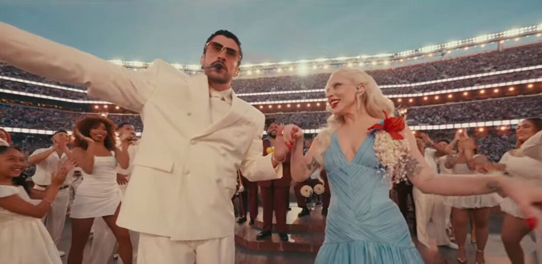 Durante el show, Ricky Martin interpretó “Lo que le pasó a Hawaii”, una canción que establece una comparación entre la historia de Puerto Rico y la del archipiélago, ambos anexados a Estados Unidos tras procesos de colonización que implicaron la pérdida de tierras, cultura e identidad para sus pueblos originarios. Por su parte, Lady Gaga ofreció una versión en salsa de “Die With a Smile”, interpretada en inglés, a la que Bad Bunny se sumó brevemente en escena.