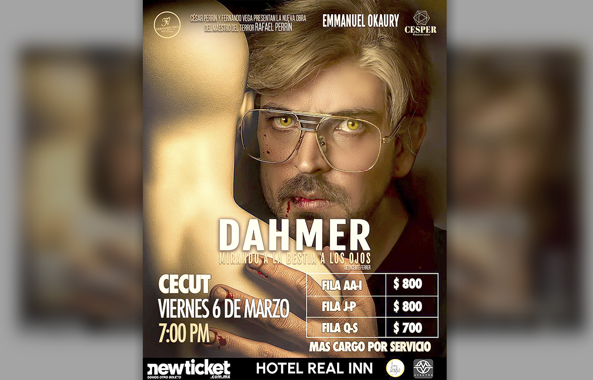 La obra de teatro “Dahmer: Mirando a la Bestia a los Ojos” llega a Tijuana el próximo viernes 6 de marzo a la Sala de Espectáculos del CECUT.