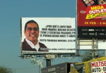 Colocan espectacular contra diputado Molina por uso de escoltas