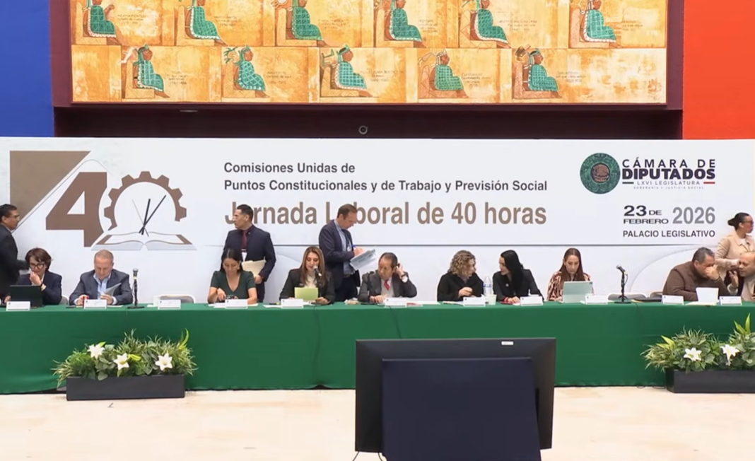 Las Comisiones Unidas de Puntos Constitucionales y del Trabajo de la Cámara de Diputados aprobaron por unanimidad, con 61 votos a favor, el dictamen para reducir la jornada laboral a 40 horas semanales, el 23 de febrero de 2026. La oposición advirtió que su voto es en términos generales y que presentará reservas al momento de la discusión en el pleno.
