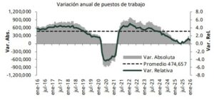 Previamente, el mercado laboral había dado muestras de desaceleración, ya que de 2022 a 2025 se fue reduciendo la tendencia histórica de crear más de 100 mil empleos durante el primer mes del año, destacó.