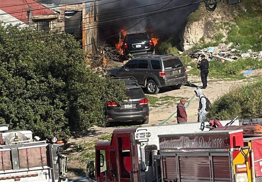 Personal de Bomberos continúa con las labores de contención y extinción del fuego, mientras que paramédicos de Cruz Roja Tijuana brindan atención prehospitalaria a las personas lesionadas.