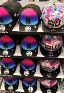 Ahí, el aficionado puede encontrar todo tipo de artículos alusivos a la gran final por el título de la NFL, como gorras, playeras, camisas, sudaderas, chamarras, llaveros, plumas y calcomanías, entre otros.