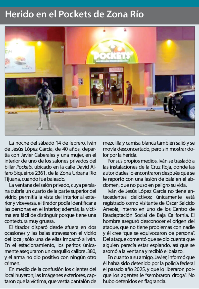 Al ser asegurado, el Cholo estaba acompañado del sinaloense Pablo Alberto Encinas Rodríguez, de 31 años, en posesión de 33 paquetes, 16 gramos de metanfetamina y con una orden de aprehensión por violación cometida el año 2024, en Angostura, California; y del tijuanense Juan Adrián Rodríguez Reyes alias el Apá, de 26 años, a quien acusaron de portación de arma de fuego.