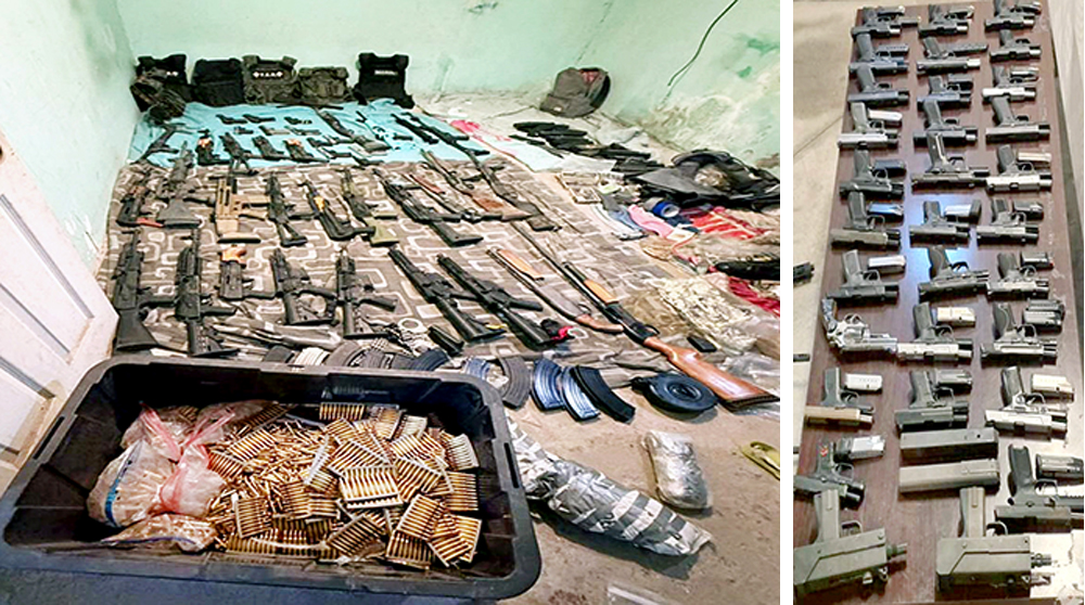 * 9 de enero: En una vivienda abandonada en la colonia El Niño, encontraron siete chalecos tácticos, 34 armas de fuego, 27 largas, siete cortas, 73 cargadores y alrededor de 10 mil cartuchos de diferentes calibres en una caja negra de almacenamiento; así como tres bolsas conteniendo metanfetamina y marihuana, y vapeadores.