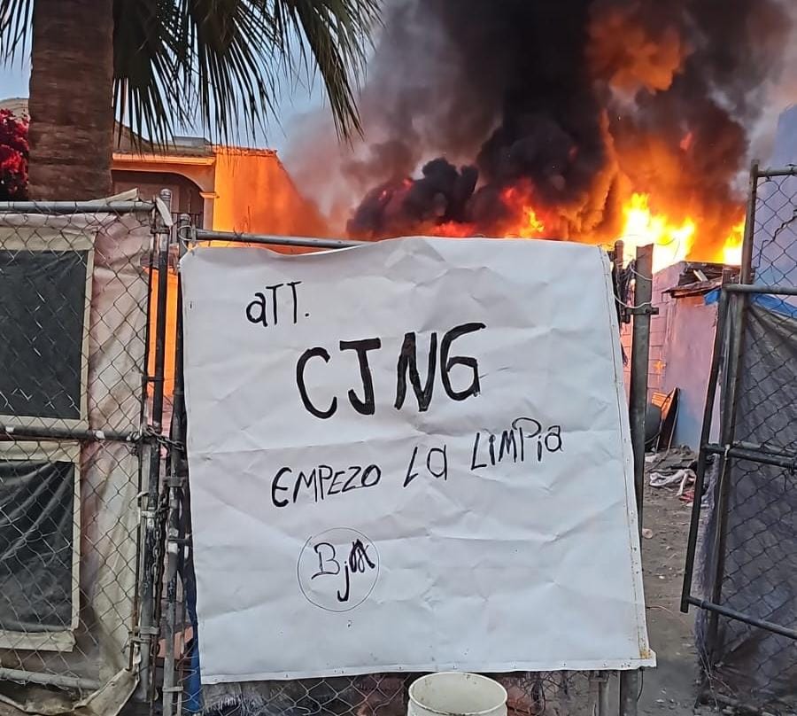 Tres delincuentes ingresaron a un predio baldío ubicado frente a las instalaciones del DIF, de la colonia Cuauhtémoc en Mexicali y provocaron un incendio, para luego colocar una cartulina firmada -supuestamente- por el Cártel Jalisco Nueva Generación (CJNG)