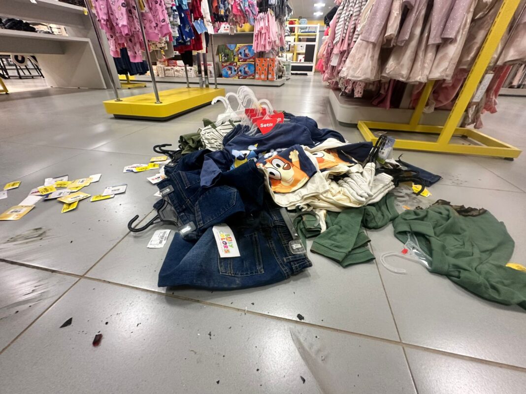 Al menos un sospechoso arrojó gasolina en el interior de la tienda, aparentemente en el área infantil, por lo que se procedió a evacuar a clientes y trabajadores.