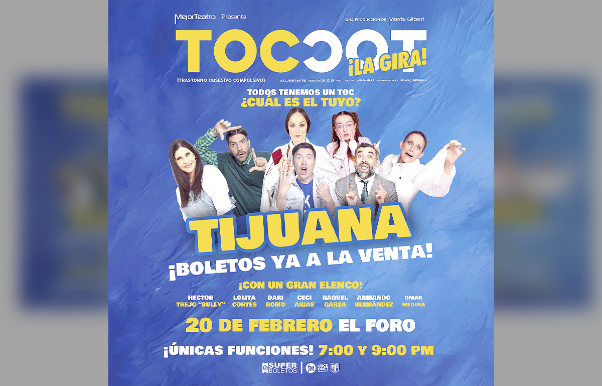 Con un gran elenco, la exitosa comedia teatral “TOC TOC” arribará a Tijuana el próximo 20 de febrero en las instalaciones del El Foro.