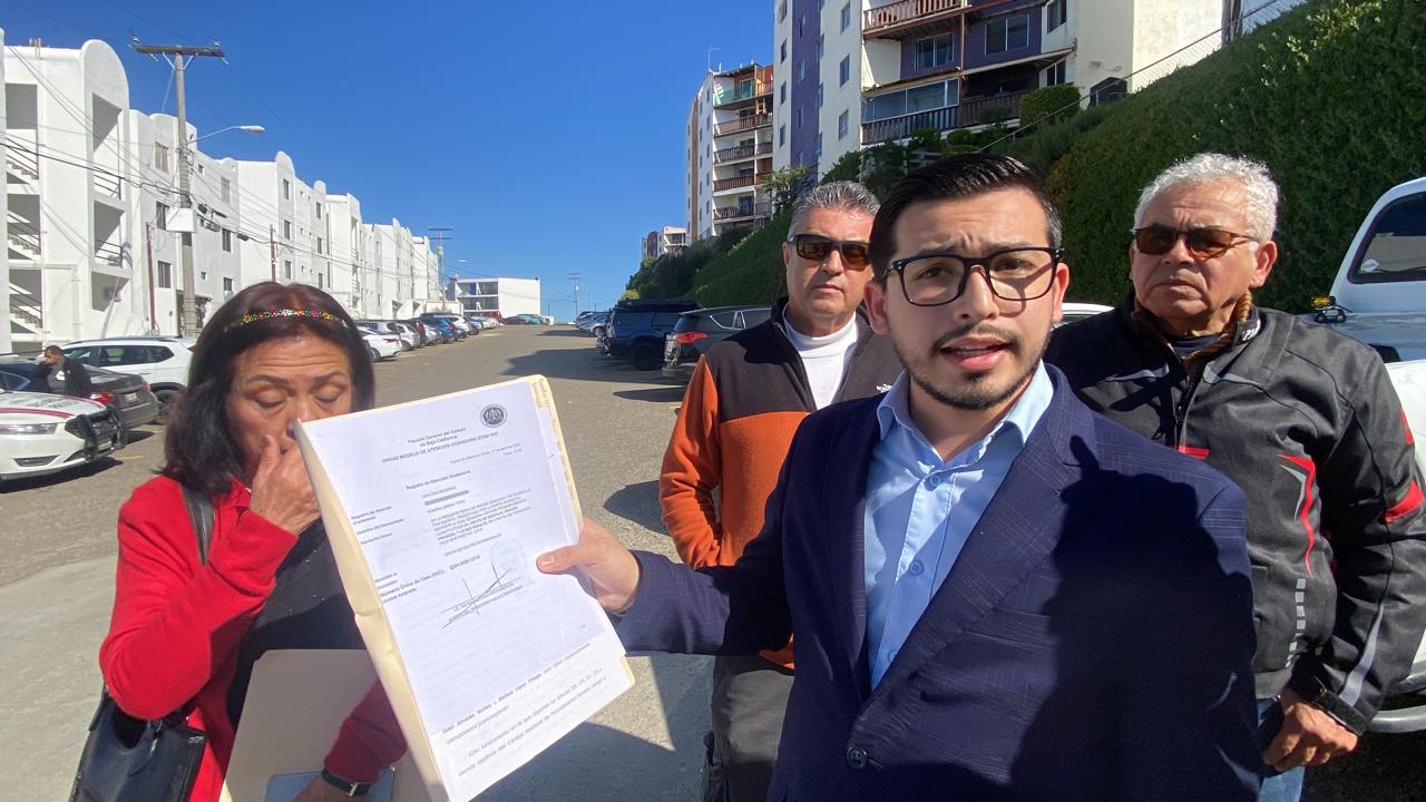 A las afueras de los condominios, inquilinos denunciaron haber sido “estafados” por Carlos Reyes, entonces administrador y abogado de bienes raíces de la privada, a quien acusan de presunto mal manejo de fondos y despojo de bienes.