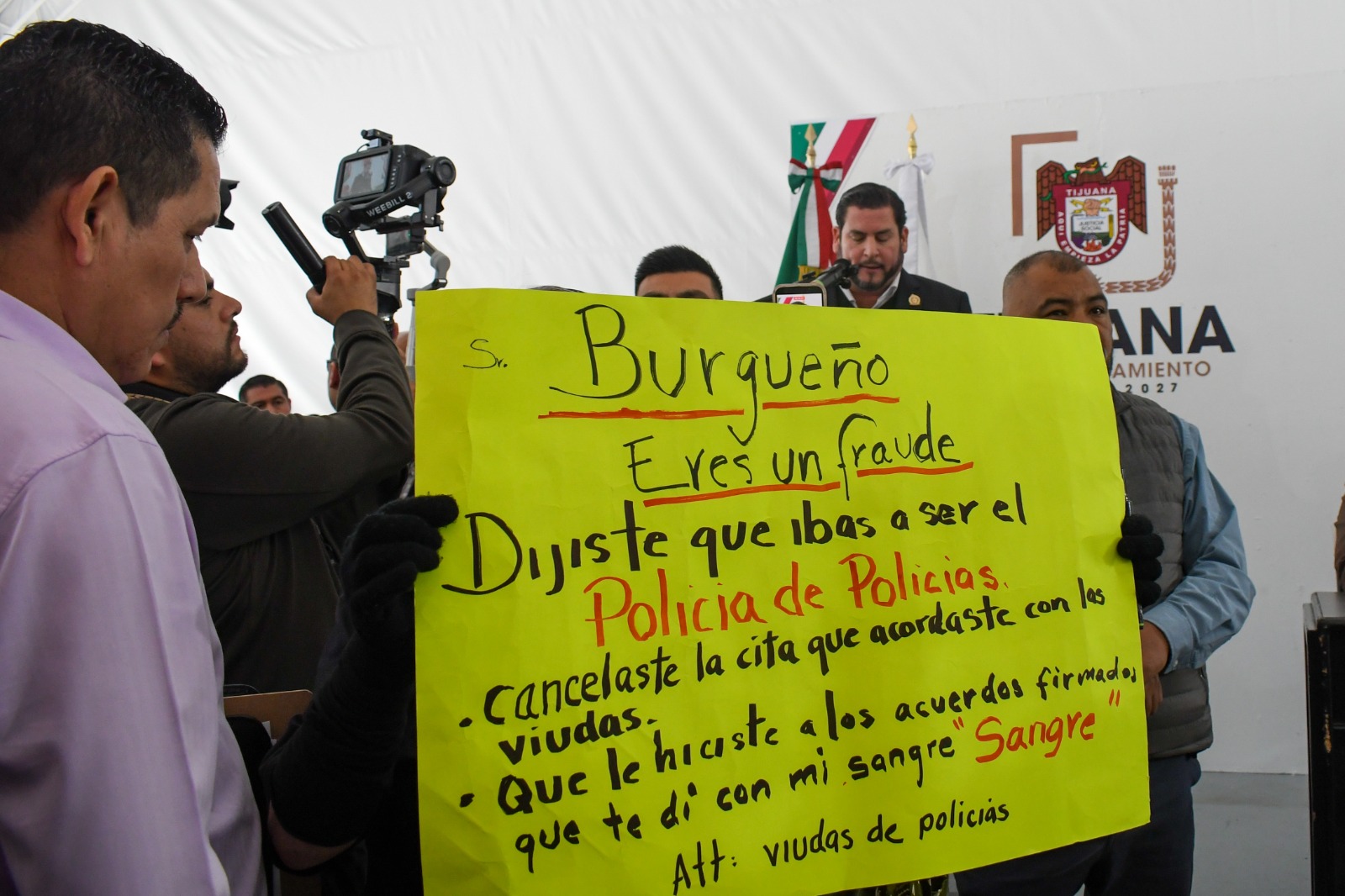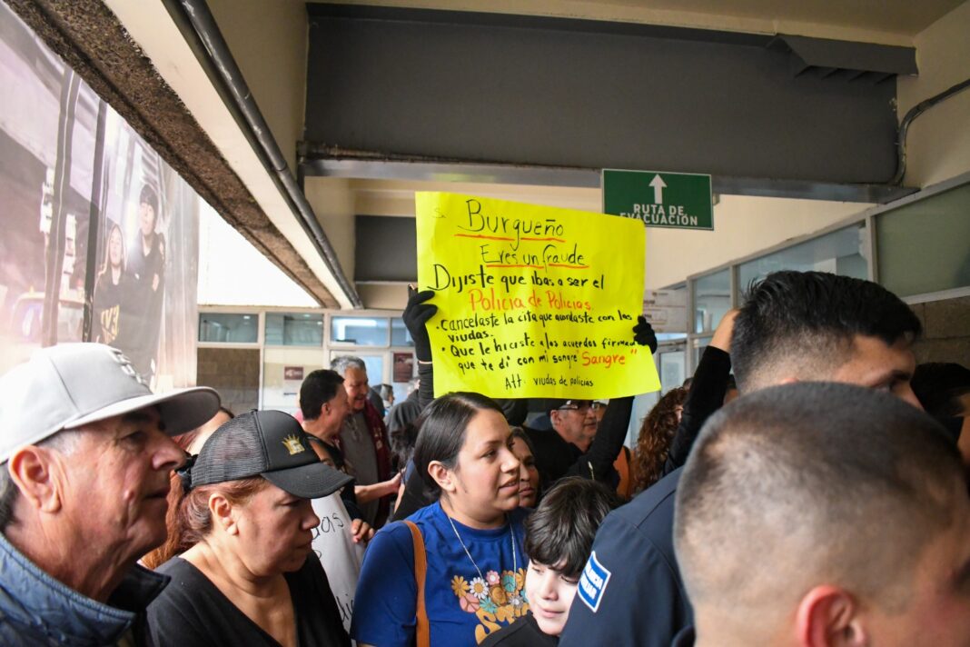 Policías jubilados y viudas de elementos caídos se manifestaron y confrontaron al presidente municipal de Tijuana, Ismael Burgueño, con el fin de exigir el cumplimiento de sus derechos.