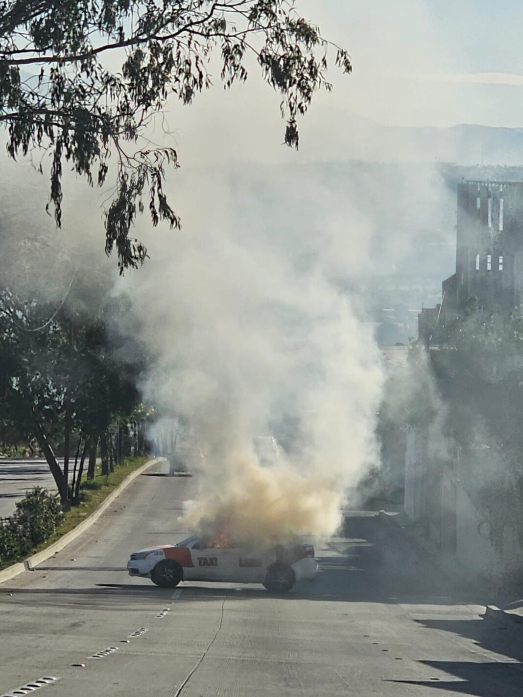 La fotografía de un taxi libre sobre la avenida Internacional de Tijuana es uno de los casos que alertó a las autoridades de seguridad, pues se suma a los casos de incendios de unidades de transporte de carga en Ensenada, en San Quintín y en la carretera de Tijuana y Tecate, reconocieron las autoridades investigadoras a ZETA.