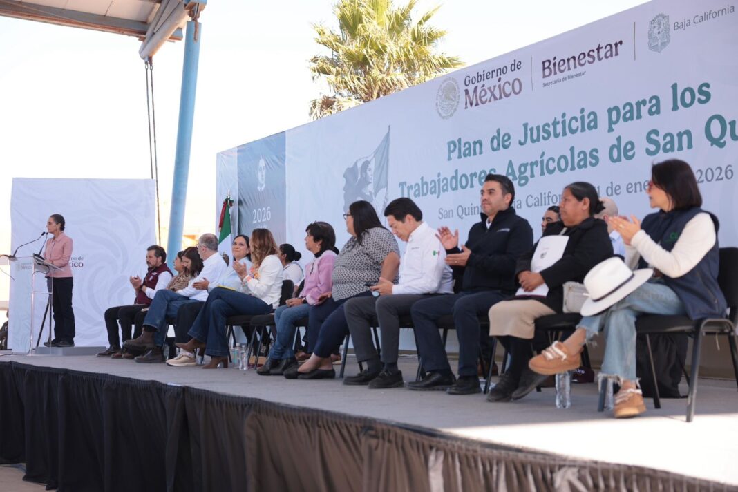 La secretaria de Bienestar, Ariadna Montiel Reyes, detalló que desde abril de 2025 se visitó a 30 mil familias para conocer directamente las necesidades de los habitantes de la zona, como fruto de ello nació el Plan de Justicia para los Trabajadores Agrícolas de San Quintín, que materializa el bienestar a través de la seguridad social, el trabajo digno, contratos formales, viviendas, regularización de la tierra, la implementación de servicios básicos, becas y los Programas para el Bienestar.