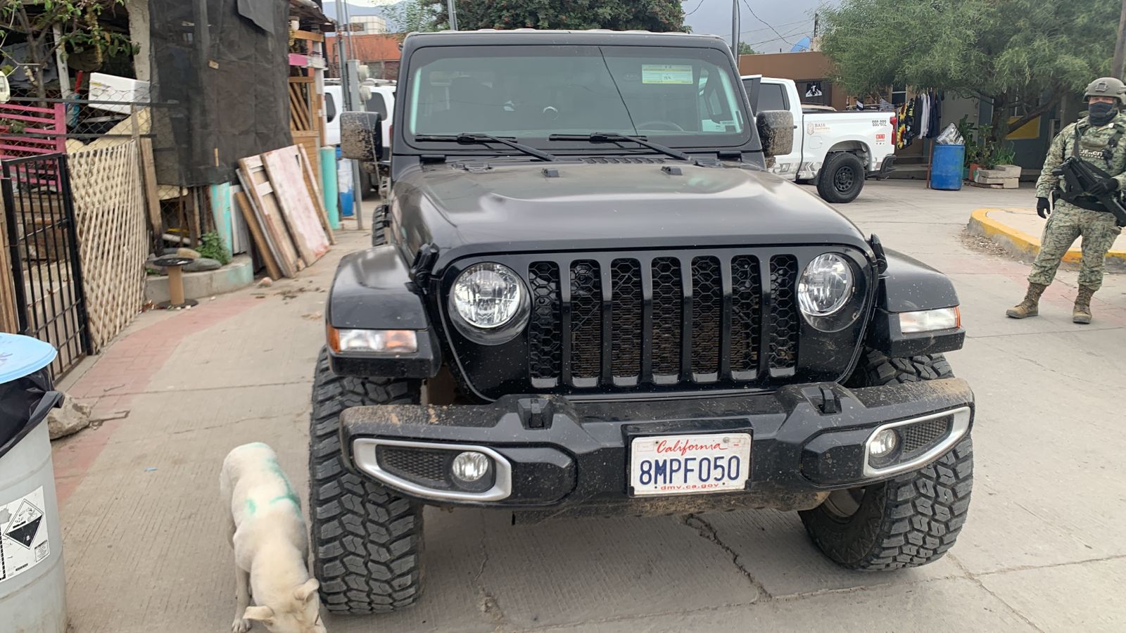 De acuerdo con la corporación estatal, al arribar al sitio los agentes observaron un vehículo Jeep Gladiador negro, modelo 2023, con placas 8MPF050, el cual contaba con reporte de robo del 20 de noviembre de 2025 en Riverside, California. En el patio frontal del domicilio se encontraban tres hombres, quienes reaccionaron de manera agresiva ante la presencia policial.
