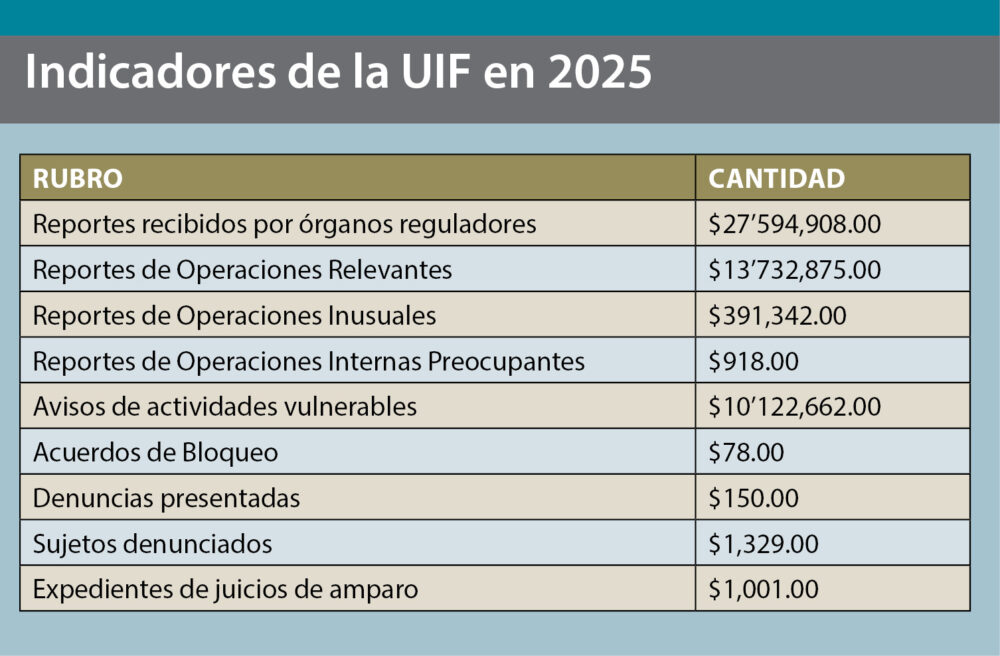 Más allá de los bancos, la prevención se extiende a la economía real a través de las denominadas Actividades Vulnerables, reguladas por la Ley Federal para la Prevención e Identificación de Operaciones con Recursos de Procedencia Ilícita (LFPIORPI). Durante 2025, la UIF recibió un total de 10 millones 122 mil 662 avisos en este sector, casi un millón 800 mil pesos menos que en el año previo. El análisis de esta vasta cantidad de información no queda en la estadística; se traduce en acciones legales concretas.