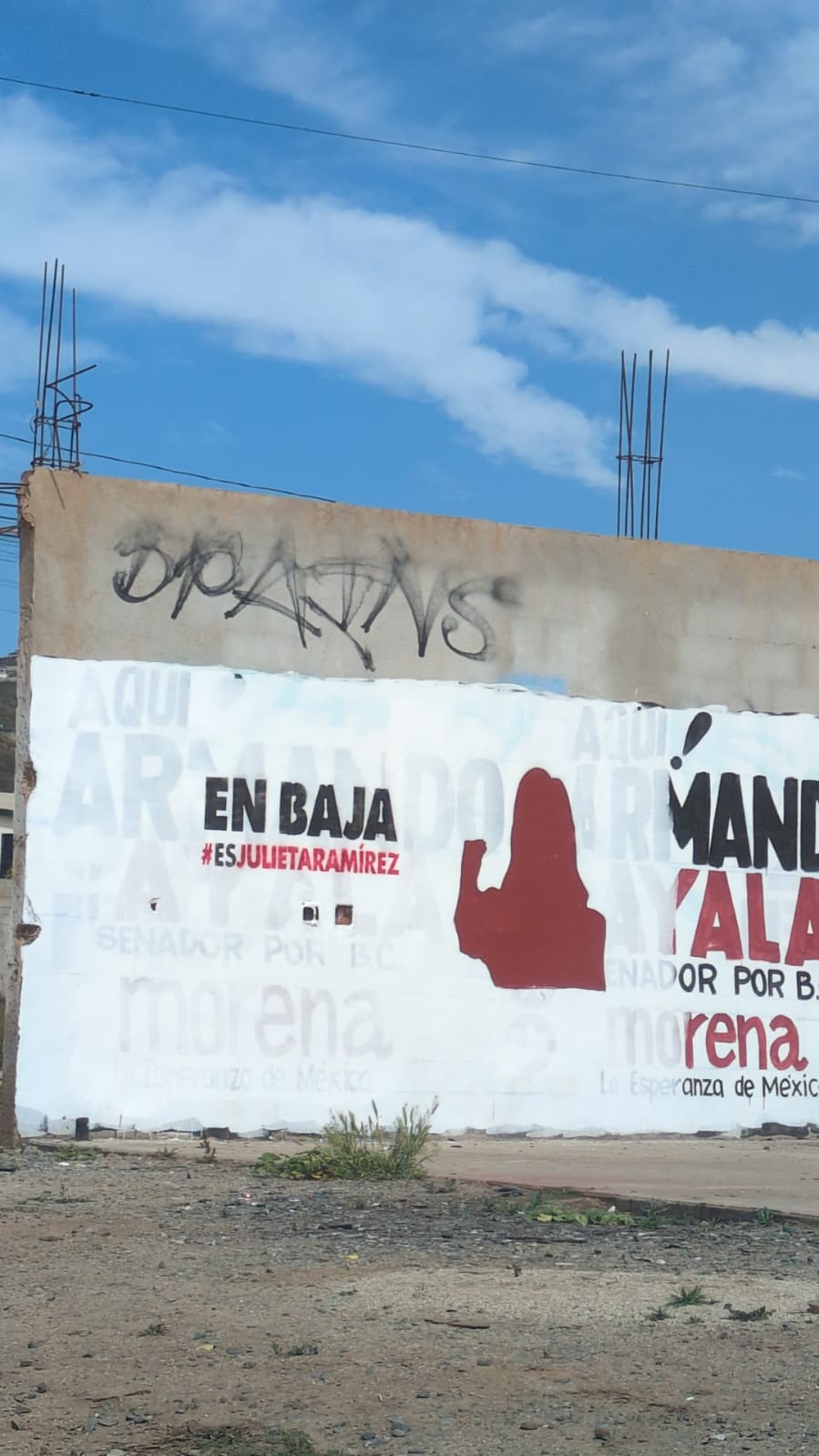 Desde este fin de semana, en diversos puntos de Baja California aparecieron mensajes pintados que hacen referencia y promoción personalizada de la senadora Julieta Ramírez Padilla, quien ha sido identificada como una de las posibles aspirantes a la Gubernatura de la entidad.
