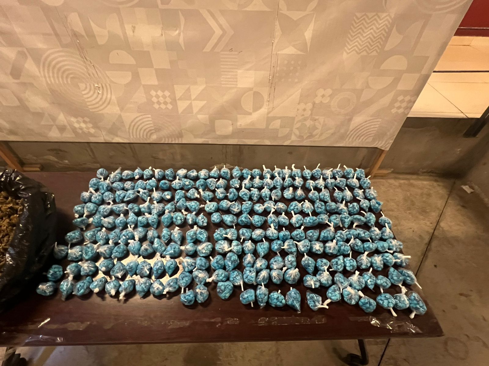 Durante la intervención, los elementos estatales aseguraron 239 bolsas de plástico transparentes que contenían en su interior 30 envoltorios de color azul cada una, con una sustancia granulada con características similares a la metanfetamina. En total se contabilizaron 7 mil 170 dosis con un peso bruto aproximado de 5.83 kilogramos.