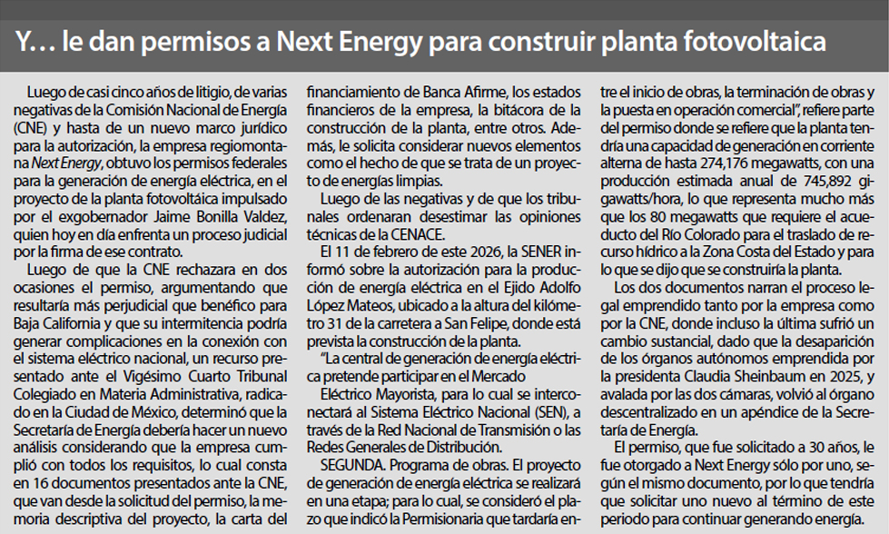 Del adelanto de 123 millones de pesos, dijo Bonilla: “Era un abono a los primeros meses de la compra de energía, no de la construcción de la fotovoltaica. O sea, a la energía, necesitamos alguien que nos la vendiera aparte, porque la planta iba a ser generadora. Ellos tenían el permiso para construir la planta, nos decían. Y tenían para generar y vendernos la energía. Esa energía nos la iban a dar a 1,35 fijo, con un aumento inflacionario cada año. Ahorita está pagando como 40 millones de pesos al mes más de lo que estuvieran pagando. Aunque no hubieran construido la planta, la empresa nos iba a estar vendiendo energía a un precio. Y ellos tenían que ver dónde la compraban y darnos a nosotros ese precio. El negocio de ellos iba a ser eventualmente construir la planta para no tener que comprar energía, ellos generarla y hagan dinero. Ese era el negocio de la empresa Next Energy”.
