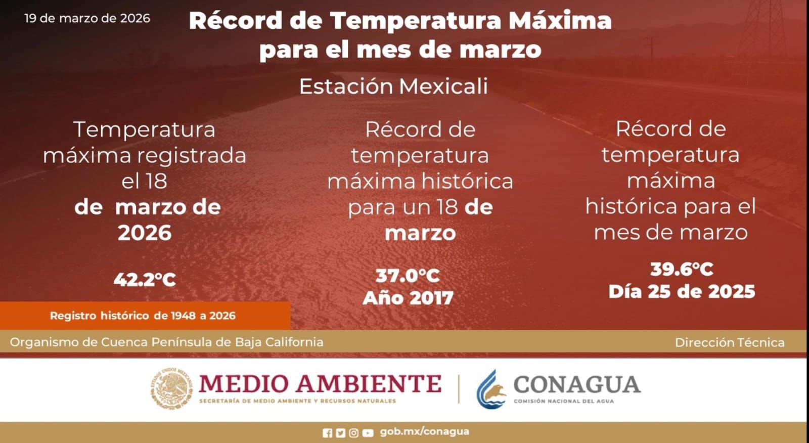 De acuerdo con CONAGUA, el pasado 18 de marzo se registró la temperatura más alta en la historia de un mes de marzo desde que se tiene registro, al alcanzar los 42.2 grados centígrados, superando los 39.6 grados registrados el 25 de marzo de 2025. De ahí la importancia de tomar medidas de salud para evitar cualquier afectación relacionada con el calor.