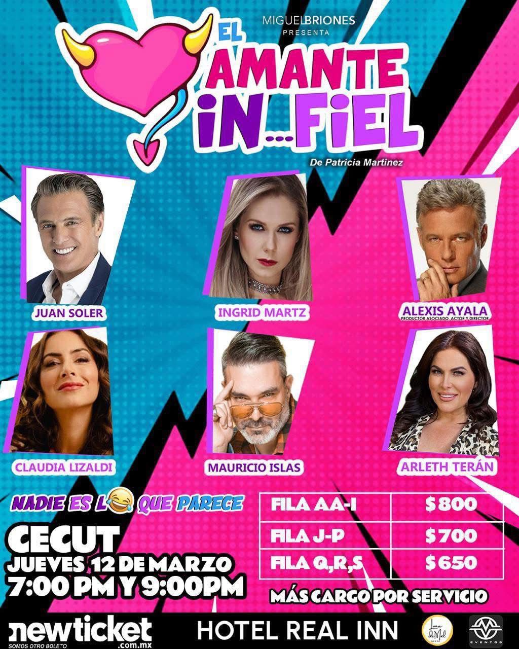 El “Amante Infiel” tendrá dos funciones a las 7 y 9 de la noche con boletos desde 650 pesos en localidades generales disponibles en la taquilla del CECUT.