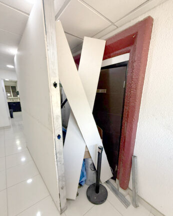 Caminando por el segundo piso del Poder Legislativo, ubicado en el Centro Cívico de Mexicali, el corazón político de Baja California, se topa de frente con oficinas en construcción, una nueva área para colocar más personal del área administrativa. Justo al frente, en el pasillo, se ve la ausencia de plafones, lo cual exhibe el cableado y tuberías que corren en todas direcciones.