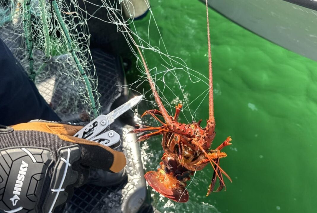 Derivado de lo anterior, durante las labores de revisión se localizaron tres redes de monofilamento de aproximadamente 100 metros de longitud cada una, en las cuales se encontraban alrededor de 50 ejemplares de langostas rojas enmalladas.