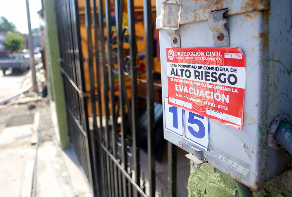 Actualmente en Tijuana hay 13 deslizamientos activos, con mil 225 casas etiquetadas: Cubillas Sur (seis viviendas afectadas), fraccionamiento La Sierra (19 viviendas), Paseos del Vergel (22), Camino Verde (359), Cumbres del Rubí (123), Lomas del Rubí (346), Aguaje de la Tuna (37), Lomas Conjunto Residencial (102), Colinas del Rey (16), Eridano-Sánchez Taboada (28), Reforma-Literatos (55), Vista Alamar (13).