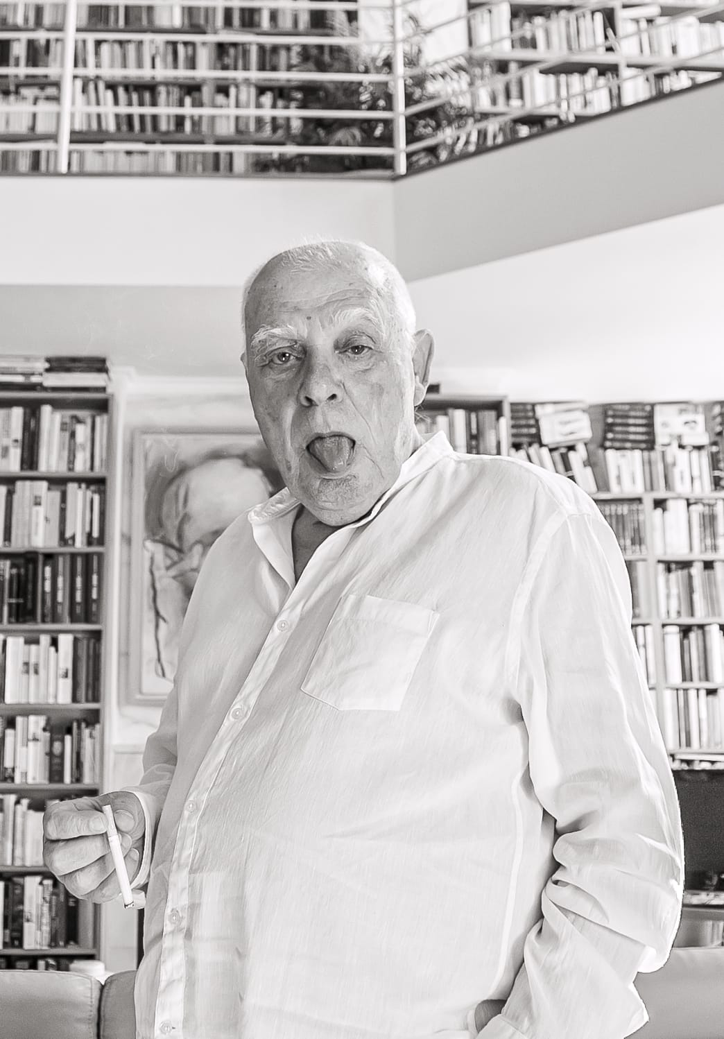 “Mi primer gran maestro, a quien rindo homenaje, lo encontré en el asilo psiquiátrico a donde fui a trabajar cuando volví de la guerra. Era un asilo muy caro, a mí me parecía una mezcla de un filme de Fellini con la casa de mis abuelos: pasillos muy largos, en la penumbra dibujos de hombres y mujeres que no caminaban, que volaban; en esos pasillos me miraban con ojos fosforescentes, ¿es así?, como si me… me hacían sentir culpable, no sé de qué, de un pecado, de una omisión, de cualquier cosa horrible.