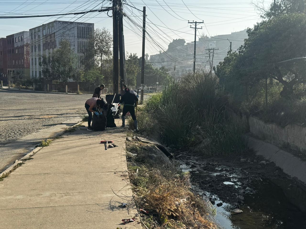 20 vecinos, en su mayoría adultos mayores, realizaron una jornada de limpieza para llamar la atención del alcalde Ismael Burgueño y que limpie la canalización y repavimente una de las calles más desatendidas de Tijuana.