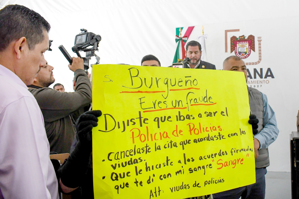 Policías jubilados y viudas de elementos caídos se manifestaron y confrontaron al presidente municipal de Tijuana, Ismael Burgueño, con el fin de exigir el cumplimiento de sus derechos.
