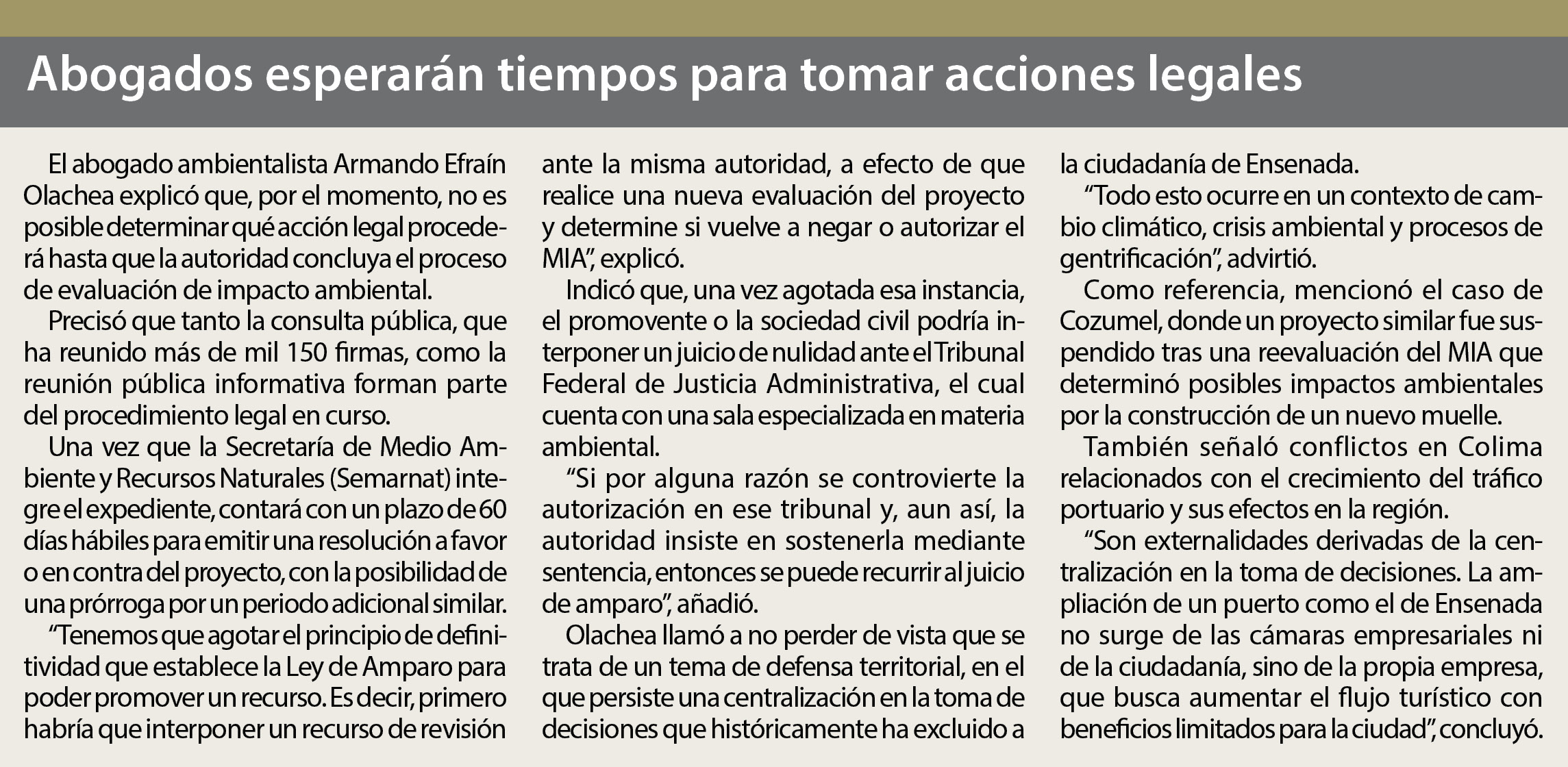 Para el activista León Fierro, integrante del colectivo Ensenada Digna, desestimó la consulta pública del martes 27 de marzo asegurando que estuvo marcada por irregularidades, limitaciones a la participación ciudadana y deficiencias en el estudio ambiental.