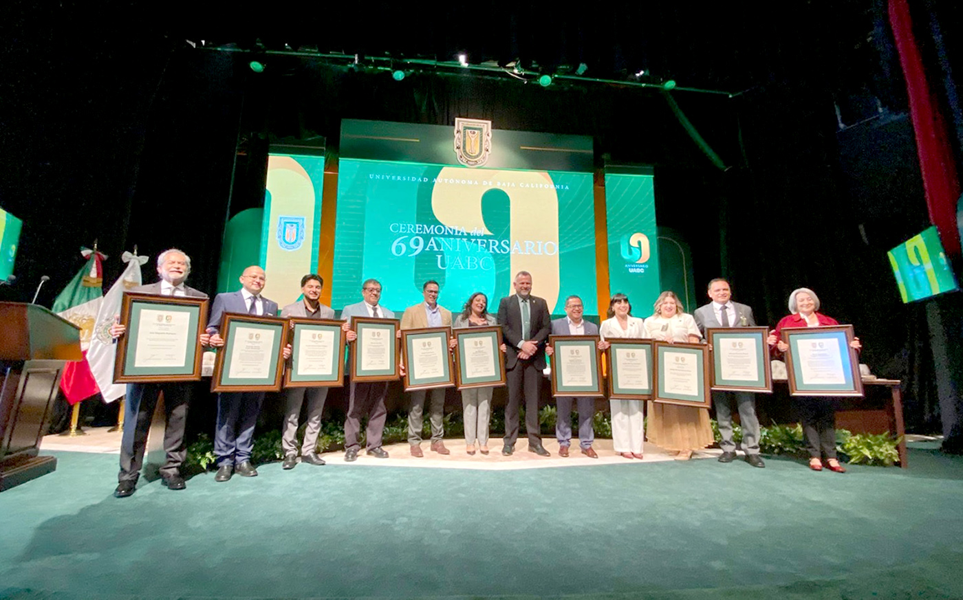 “Reconocer el Mérito Académico, Deportivo y Escolar, así como la trayectoria de quienes han dedicado décadas a esta institución, reafirma que esta Universidad se sostiene en el esfuerzo colectivo, en la convicción y en la responsabilidad social”, expresó el rector de la UABC, Luis Enrique Palafox Maestre, al reconocer a 11 académicos en diversas áreas, que por décadas han formado a las nuevas generaciones de cimarrones, entre ellos Jhosell Rosell Castro en el área de Artes.