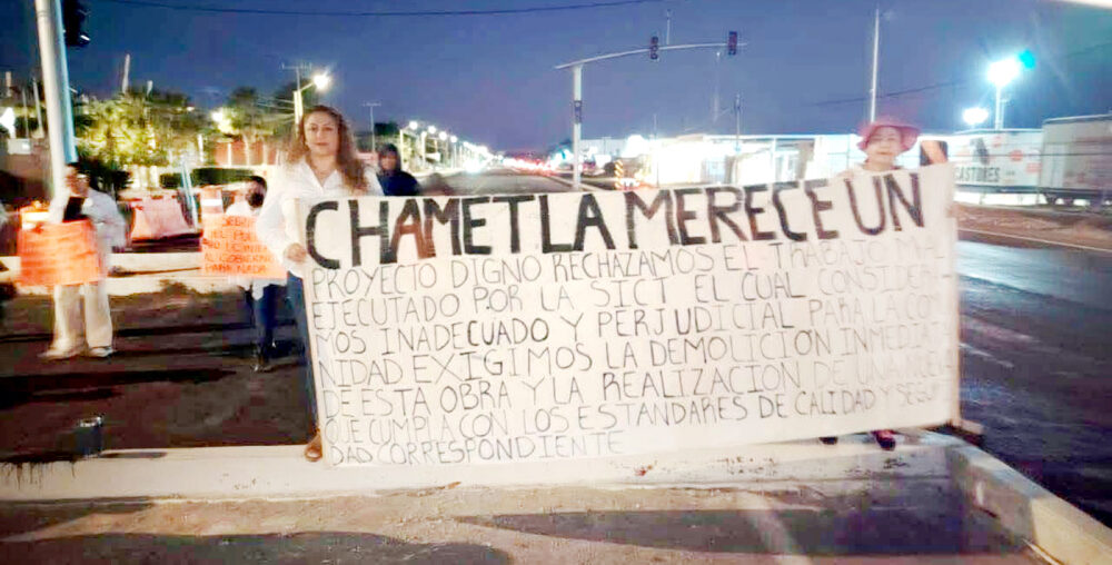 Mientras tanto en la ciudad de La Paz, previo al evento de la presidenta, habitantes de la subdelegación de Chametla, llevaron a cabo una manifestación en contra de la obra de modernización que se ejecuta en esa carretera.
