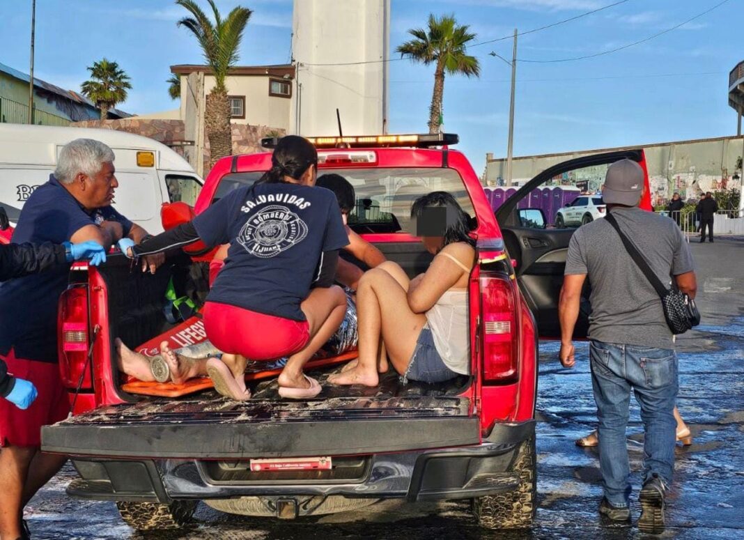 Dos menores fueron rescatados en Playas de Tijuana luego de que ingresaran al mar y no pudieran salir.