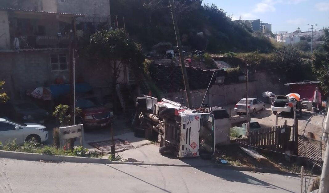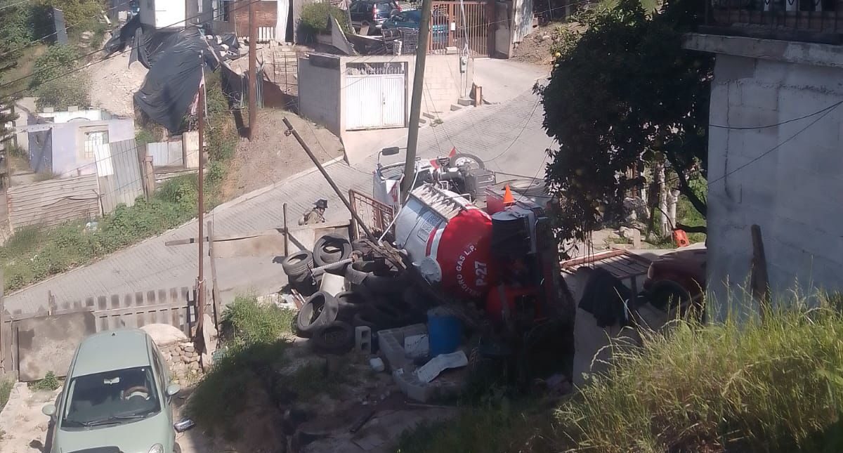 Vuelca pipa de gas en Jardines de Aguacaliente en Tijuana; reportan dos heridos