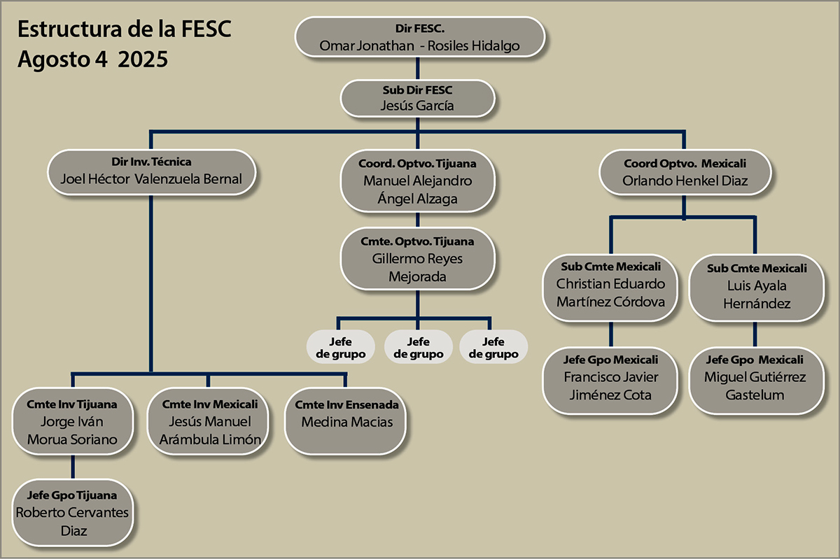 Estos elementos señalados como afines al Princeso, y nuevamente empoderados, son: Omar Jonathan Rosiles Hidalgo (coordinador de la FESC), Guillermo Reyes Mejorada (comandante operativo), Orlando Hankel Diaz (coordinador operativo), Samuel Ceballos, Jaime Brambila López, Roberto Cervantes, Marco Antonio Ochoa Rodelo, Moraila Gaxiola, y otros apellidos como Aguilera, Briones, Fernando Yáñez Santiago, Alberto Camacho Marrufo, Estrada, Mejía y Arellano Moreno.