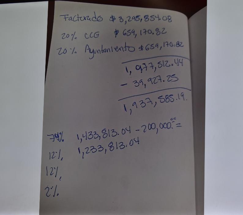 Olivaldo Paz Gómez mostró la foto de una hoja con cifras indicando que en enero y febrero de 2026 se captaron 3 millones 295 mil 854.08 pesos por el SIEM. Acusó al presidente del CCE Roberto Lyle de querer entregar el recurso de Canaco “cobrando para ellos un 20%” (659,170.82 pesos) y otorgándole indebidamente 200 mil pesos a la Canacope, pues el organismo presidido por Mónica Alfaro Reyes no está autorizado ante la Secretaría de Economía. “Eso es un delito”, calificó.