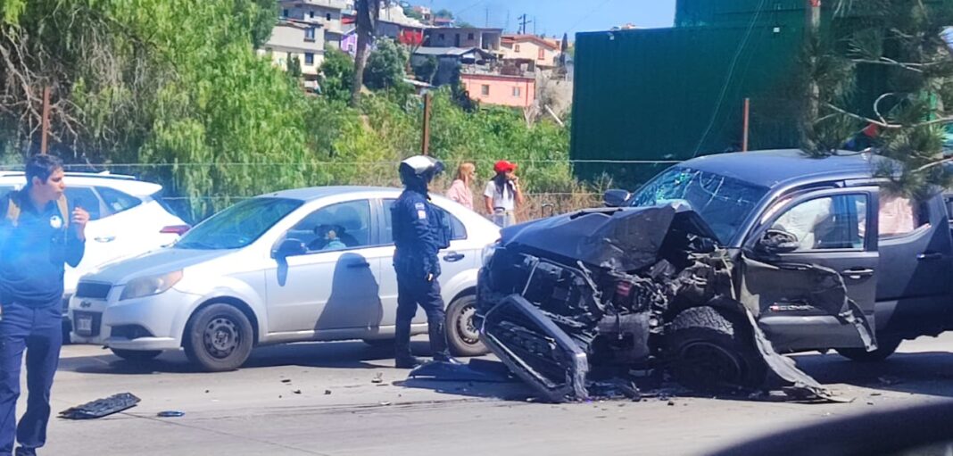 Una colisión entre un taxi de ruta y una camioneta tipo pick up Toyota Tacoma se registró la tarde de este miércoles 22 de abril sobre el bulevar Cuauhtémoc Sur, en Tijuana.