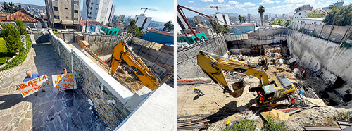 “El sistema de edificación que pudieron haber utilizado, que pudieron haber colocado es a lo vertical, hacia abajo dentro de los límites de su predio; pero lo hicieron horizontal a los extremos, excediendo los límites de su predio. Tenemos entendido que fueron 15 metros, 16 metros y el terreno de mis clientes mide 11 a lo ancho, quiere decir que lo atravesaron completamente”, explicó Romero Pérez, abogado de los afectados en la Madero Sur.