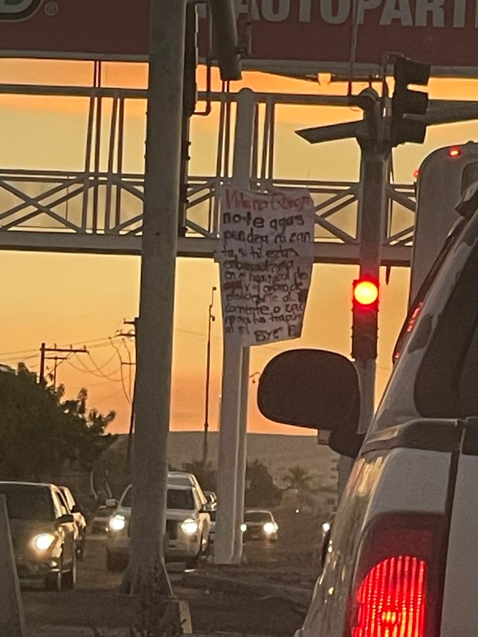 La mañana de este lunes 6 de abril fue colocada una presunta narcomanta en un puente de la salida norte del municipio de La Paz, a la altura de Cola de la Ballena, frente a Plaza Galerías. En el mensaje se señala a la alcaldesa de la capital del estado, Milena Quiroga Romero, a quien se le acusa de presuntos vínculos con el cobro de piso y el denominado “huachicol del agua” en la ciudad.