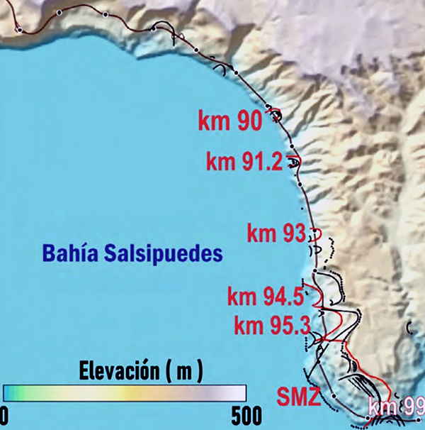 Para evaluar el estado de actividad de los deslizamientos en la región de Salsipuedes, en el corredor costero Tijuana-Ensenada, luego de nueve años de trabajos de estabilización, tras el derrumbe, analizaron por dos años consecutivos (2022 y 2023) la ruta, encontrando la presencia de cuatro zonas con deslizamientos activos
